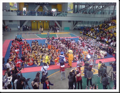 228一早八點在五股,10幾個人吃了100人份的早餐後,滿足的踏出校門。隨便挑了一輛公車坐上,開始四天悠哉的連續假期。10點約了阿兵哥在陽明山郊遊,順道繞進文化巡視一番,正在舉行46周年校慶系列活動,啦啦隊比賽。