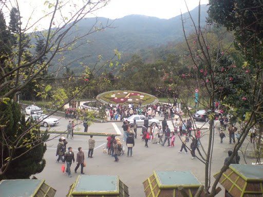 假日到陽明山郊遊踏青的人潮洶湧,公車總站還提供薑茶,按摩服務。賞花專車可說是無間斷發車。