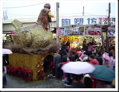 結訓放假前一個星期,全營區開始慢慢流行起咳嗽風,本以為這點小病感染不到我,想不到放假前三天卻愈來嚴重,直到回到家進入最嚴重的階段。大年初一本來要乖乖在家養病,下午看到新聞,竹山紫南宮有2008顆金雞蛋,馬上飛奔過去湊熱鬧。到達那邊雖然是下午五點,想不到下交流道就開始塞車,綿延了1公里之長,好不容易才進到CWC家庭院。看著別人只能乖乖被停車場老闆抓走,我卻能直接轉進入VIP級的大庭院,心裡一股愉悅湧上心來!